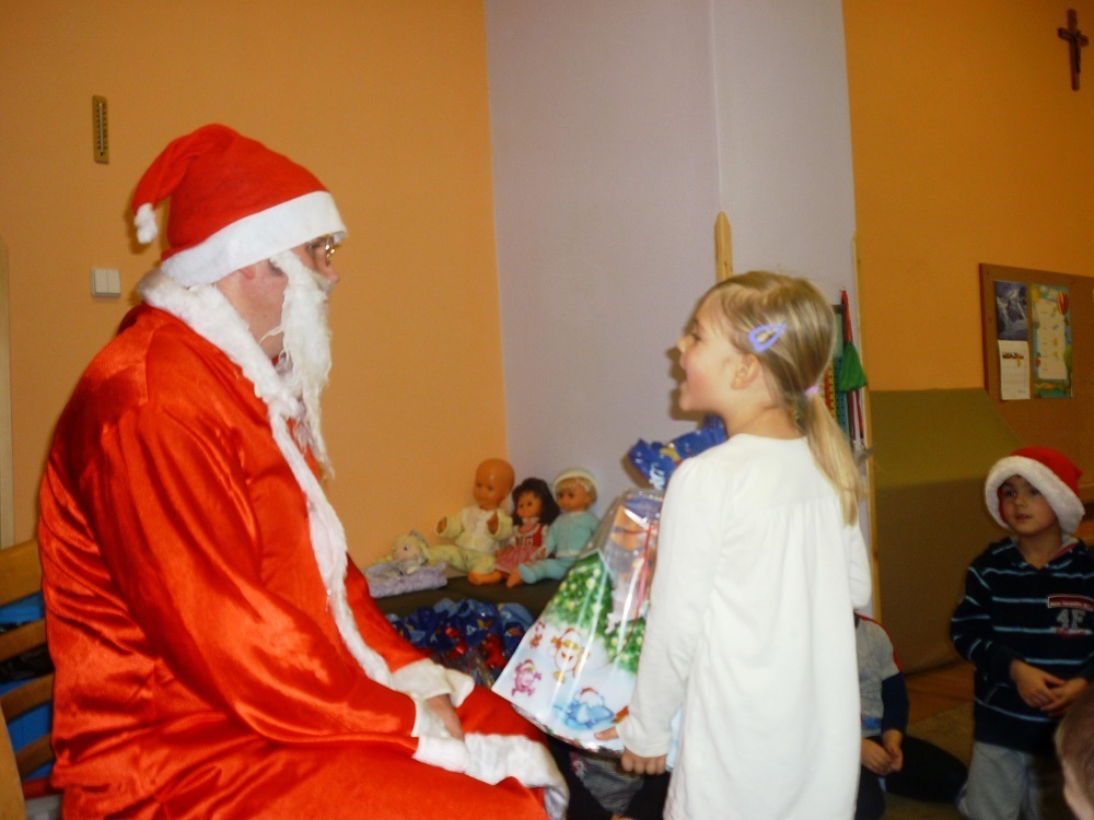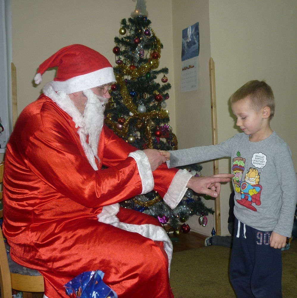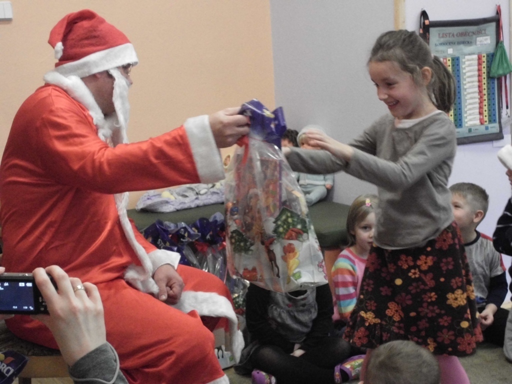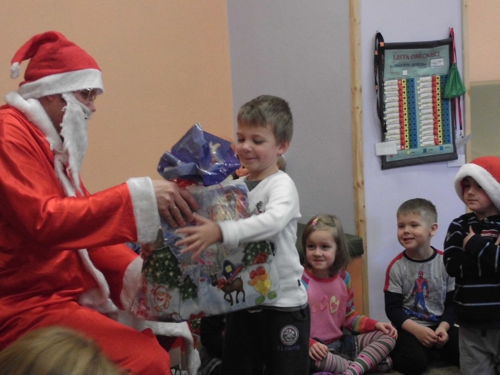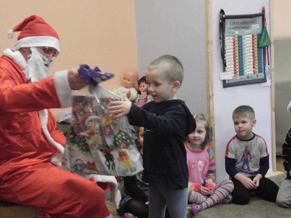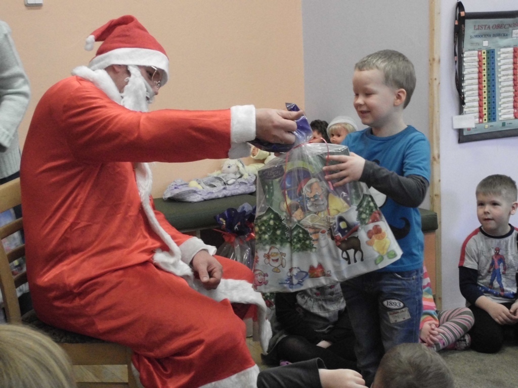Wszyscy przywitaliśmy naszego gościa bardzo gorąco i zaprosiliśmy do wspólnego śpiewu, które zakończyło się wręczeniem oczekiwanych prezentów oraz zdjęciami.