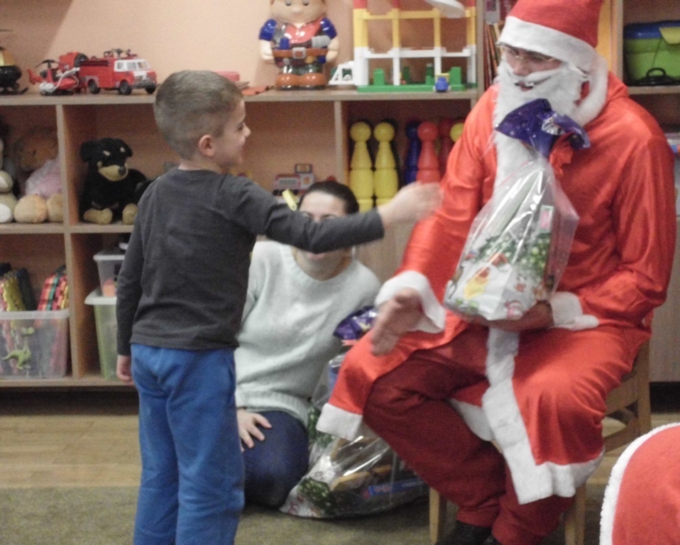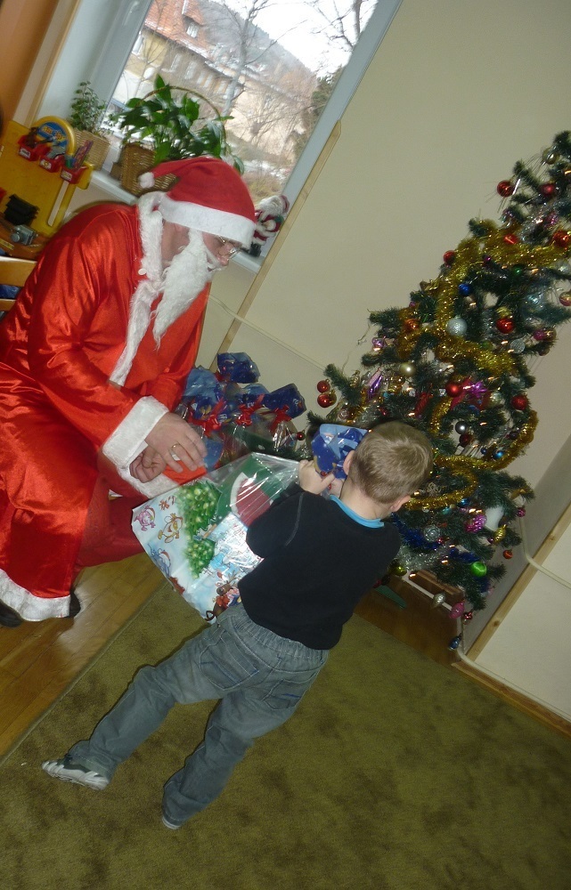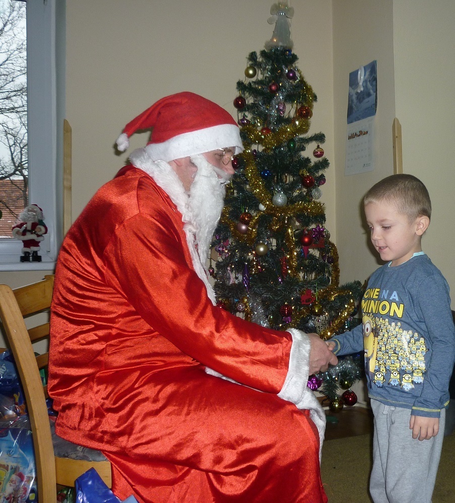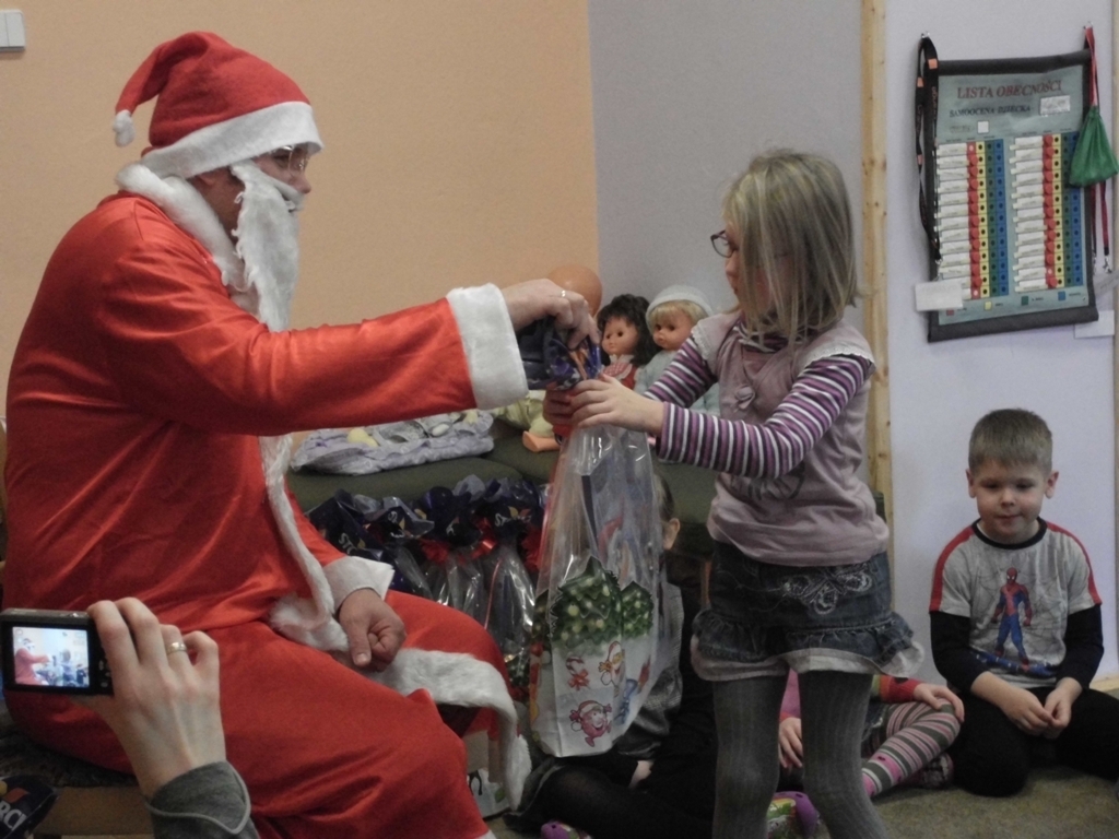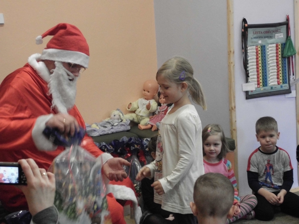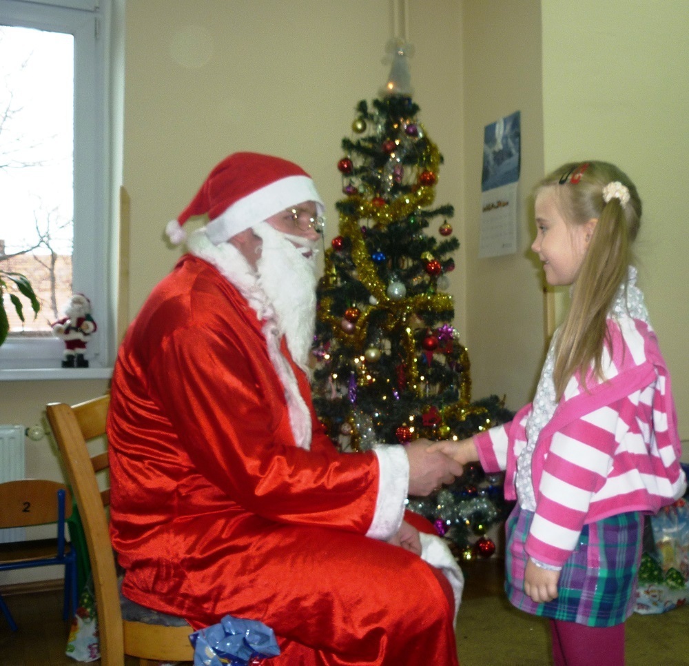 Wszyscy przywitaliśmy naszego gościa bardzo gorąco i zaprosiliśmy do wspólnego śpiewu, które zakończyło się wręczeniem oczekiwanych prezentów oraz zdjęciami.