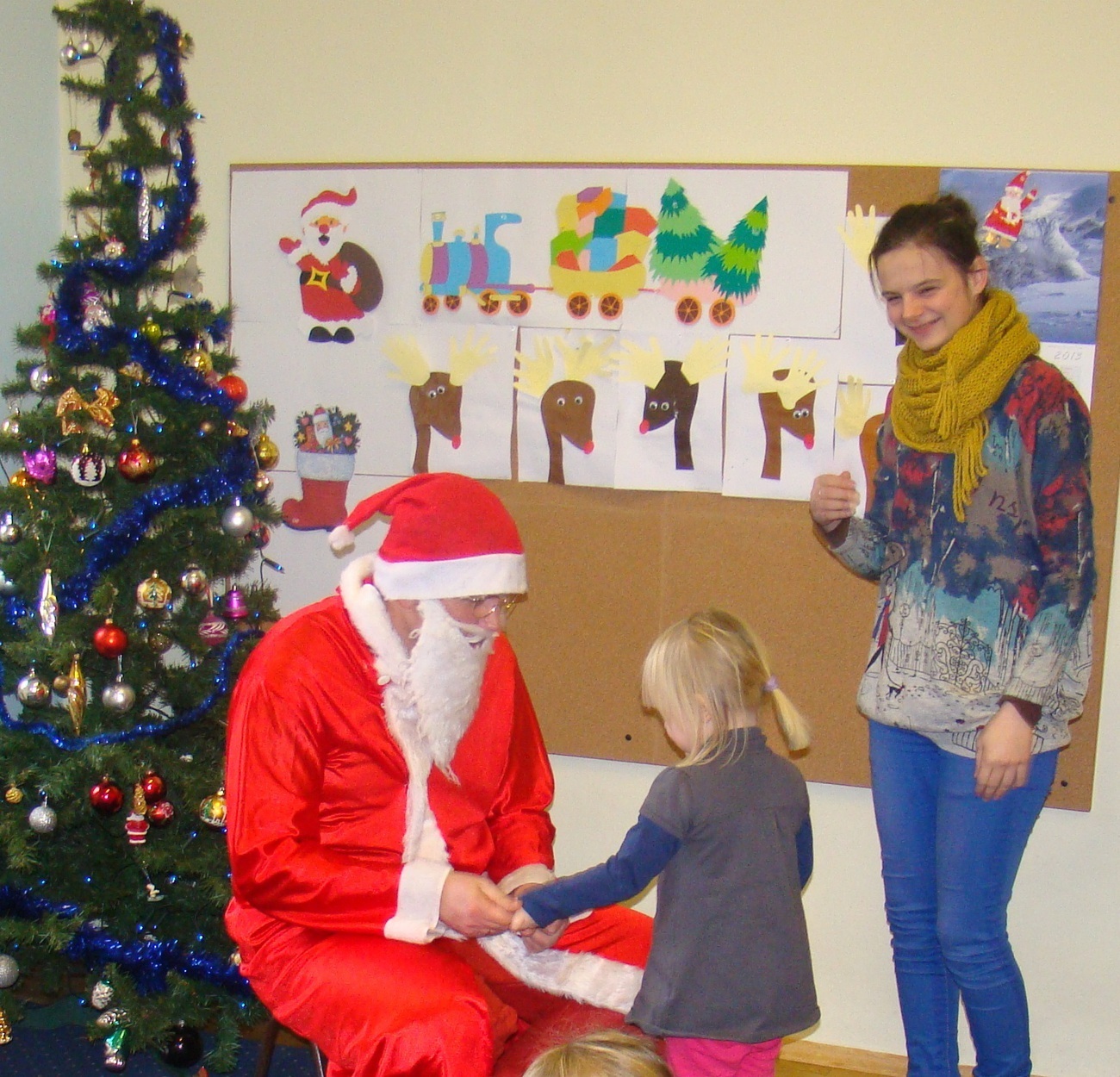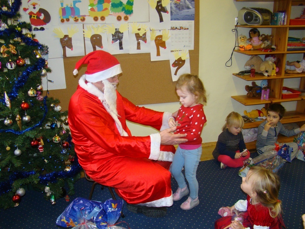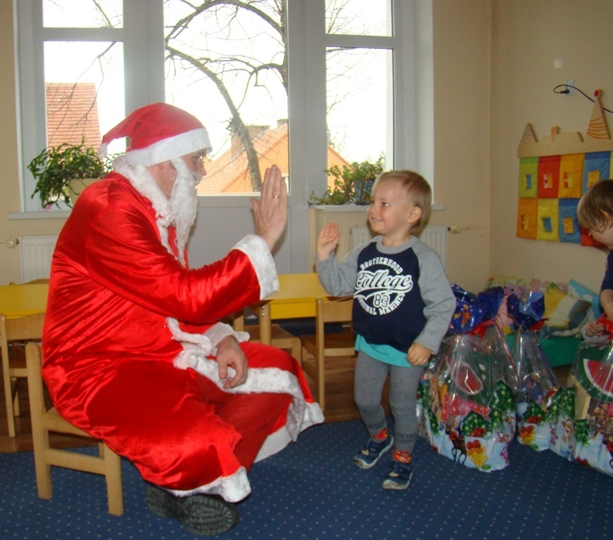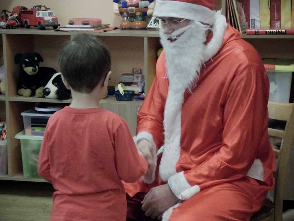 Święty Mikołaj dotarł na czas, mimo napiętego harmonogramu odwiedzin. Swoje wejście jak na Mikołaja przystało rozpoczął życzeniami: Wesołych Świąt!