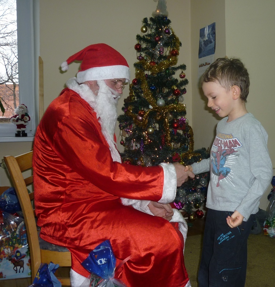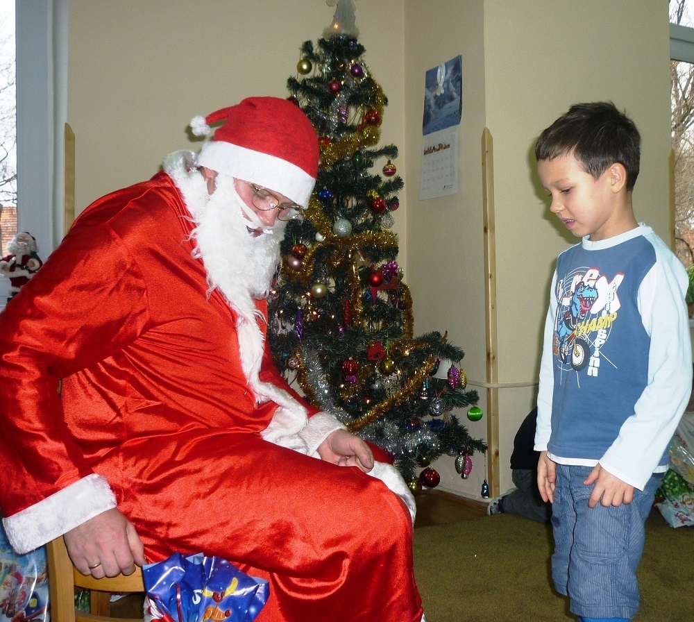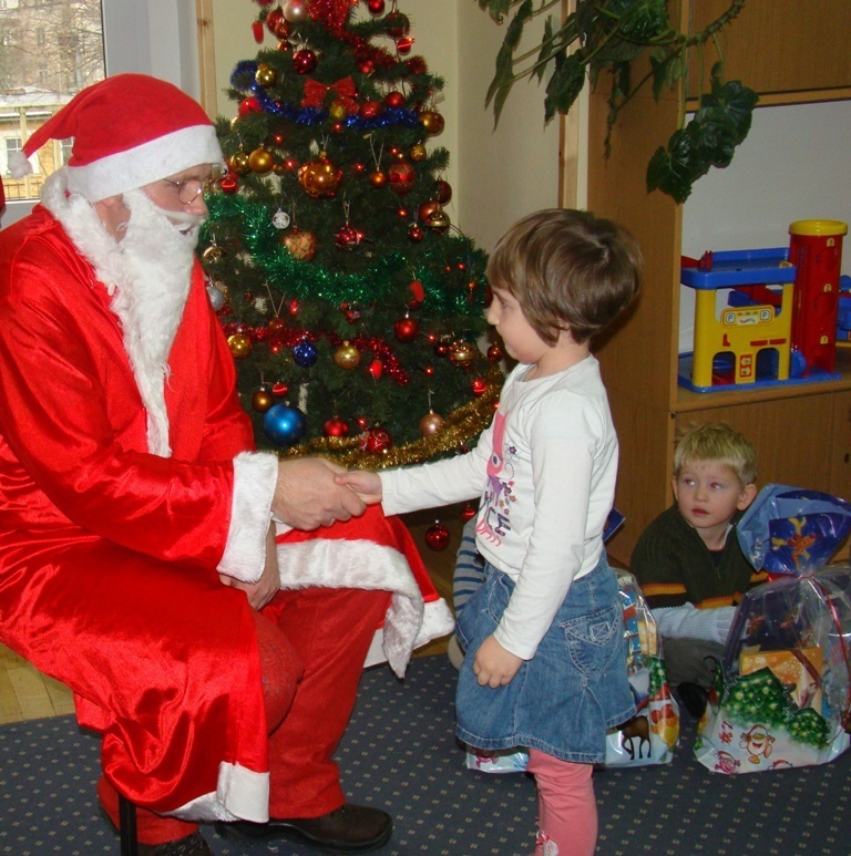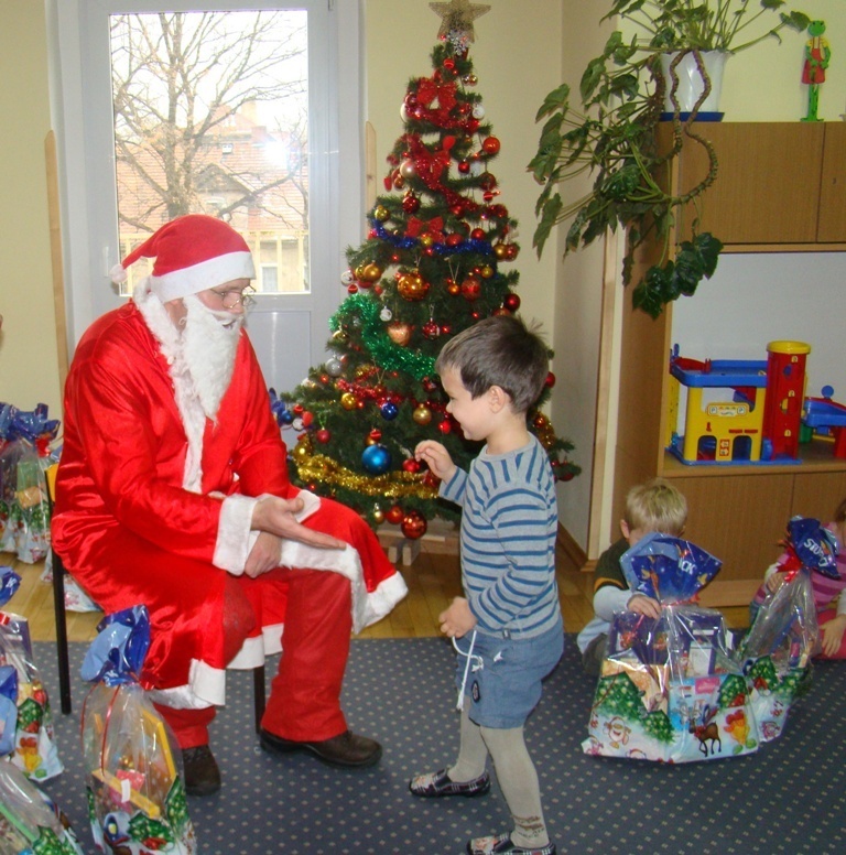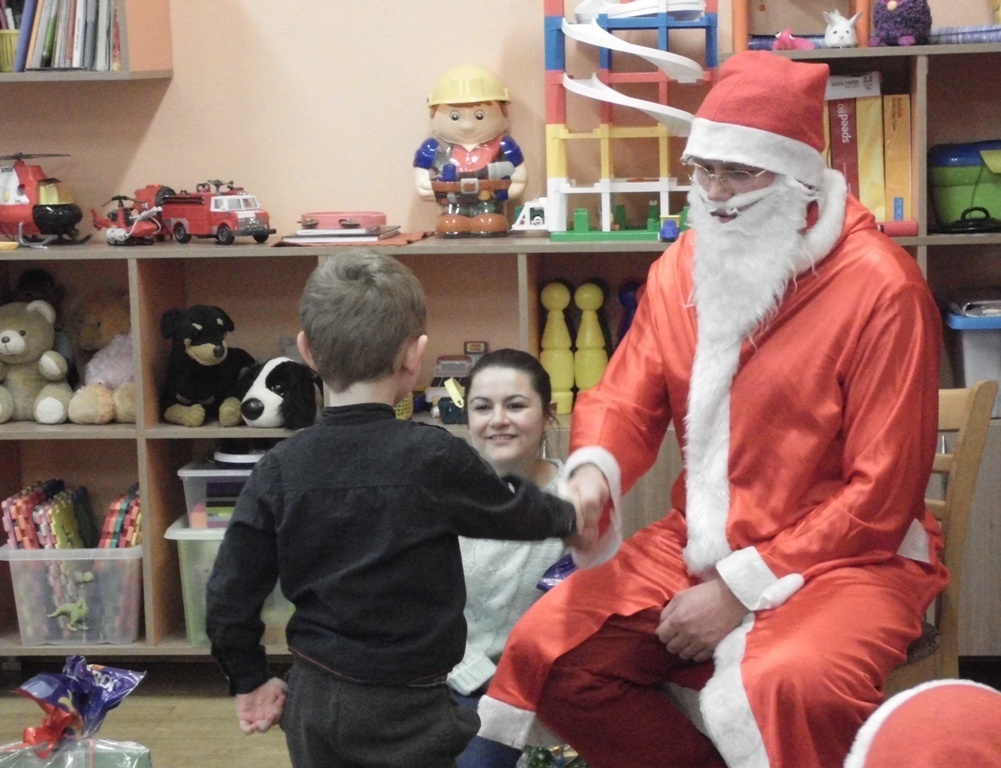 Święty Mikołaj dotarł na czas, mimo napiętego harmonogramu odwiedzin. Swoje wejście jak na Mikołaja przystało rozpoczął życzeniami: Wesołych Świąt!