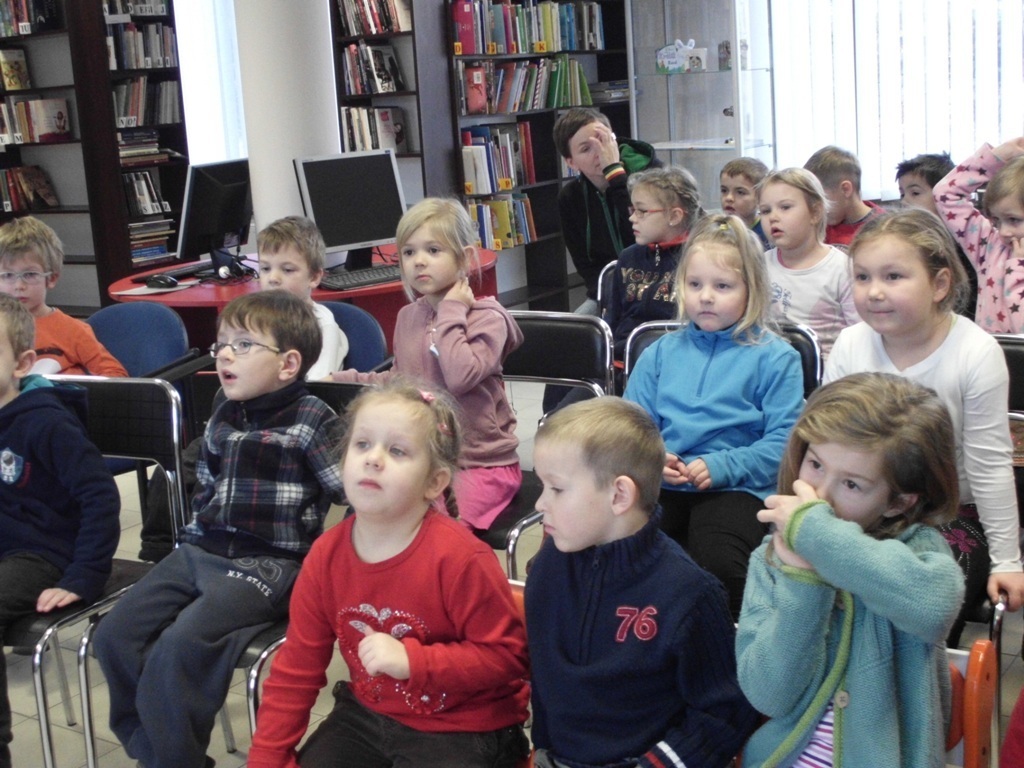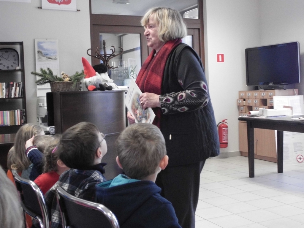 W czasie, gdy jedne starszaki pracowały, drugie uczestniczyła w spotkaniu z panią Marią Nienartowicz, która jest autorką bajek o karkonoskich skrzatach. Mieliśmy okazję porozmawiać z panią Marią i posłuchać jednego z jej opowiadań czytanych przez autorkę.