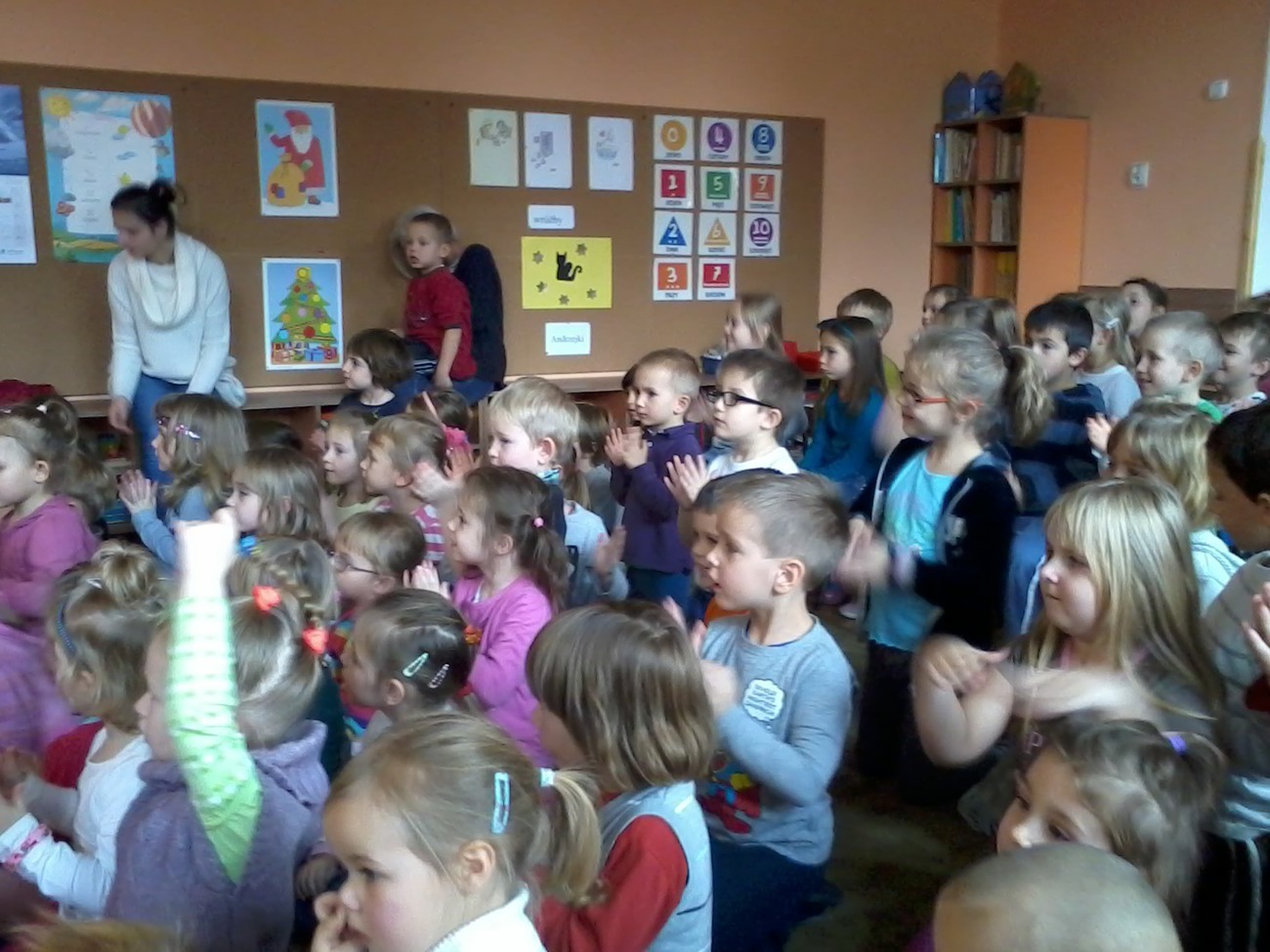 Po występach wymieniliśmy spostrzeżenia na temat tradycji Bożenarodzeniowych, a także wysłuchaliśmy wiersza o choince. Na koniec wszyscy zaśpiewaliśmy kolędę "Dzisiaj w Betlejem" i życzyliśmy sobie, aby te święta pachnące choinką były dla każdego z nas pełne ciepła i miłości w gronie najbliższych nam osób.