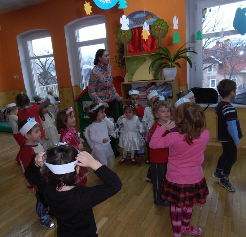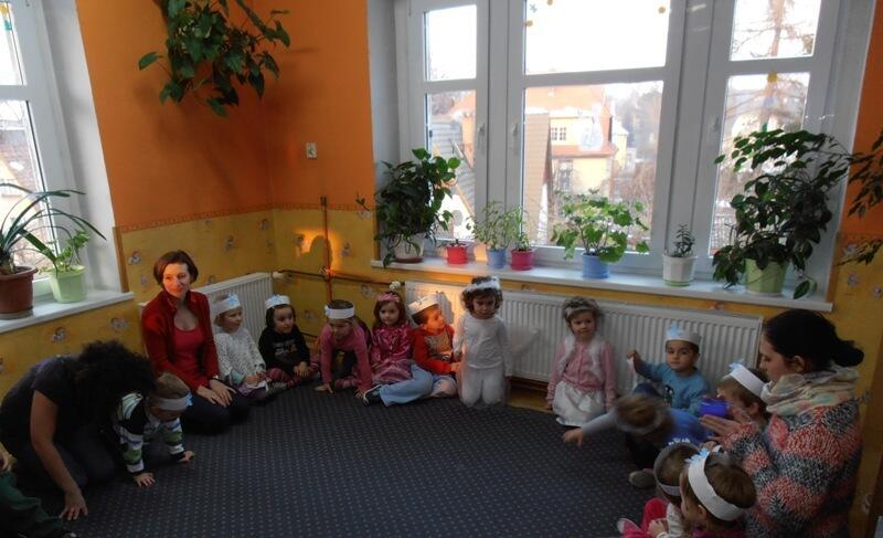 W naszej grupie odbył się Bal Pani Zimy (z cyklu Bale Pór Roku). Wszyscy zjawiliśmy się w zimowych strojach. Wspólnie z rodzicami bawiliśmy się, wykonując zadania wyznaczone przez panią Zimę. Musieliśmy wykazać się dużą wytrwałością i zręcznością, co zaowocowało sukcesem. Najbardziej podobało nam się wspólne lepienie bałwanków. Na zakończenie czekała na nas słodka niespodzianka w zimowym przebraniu.