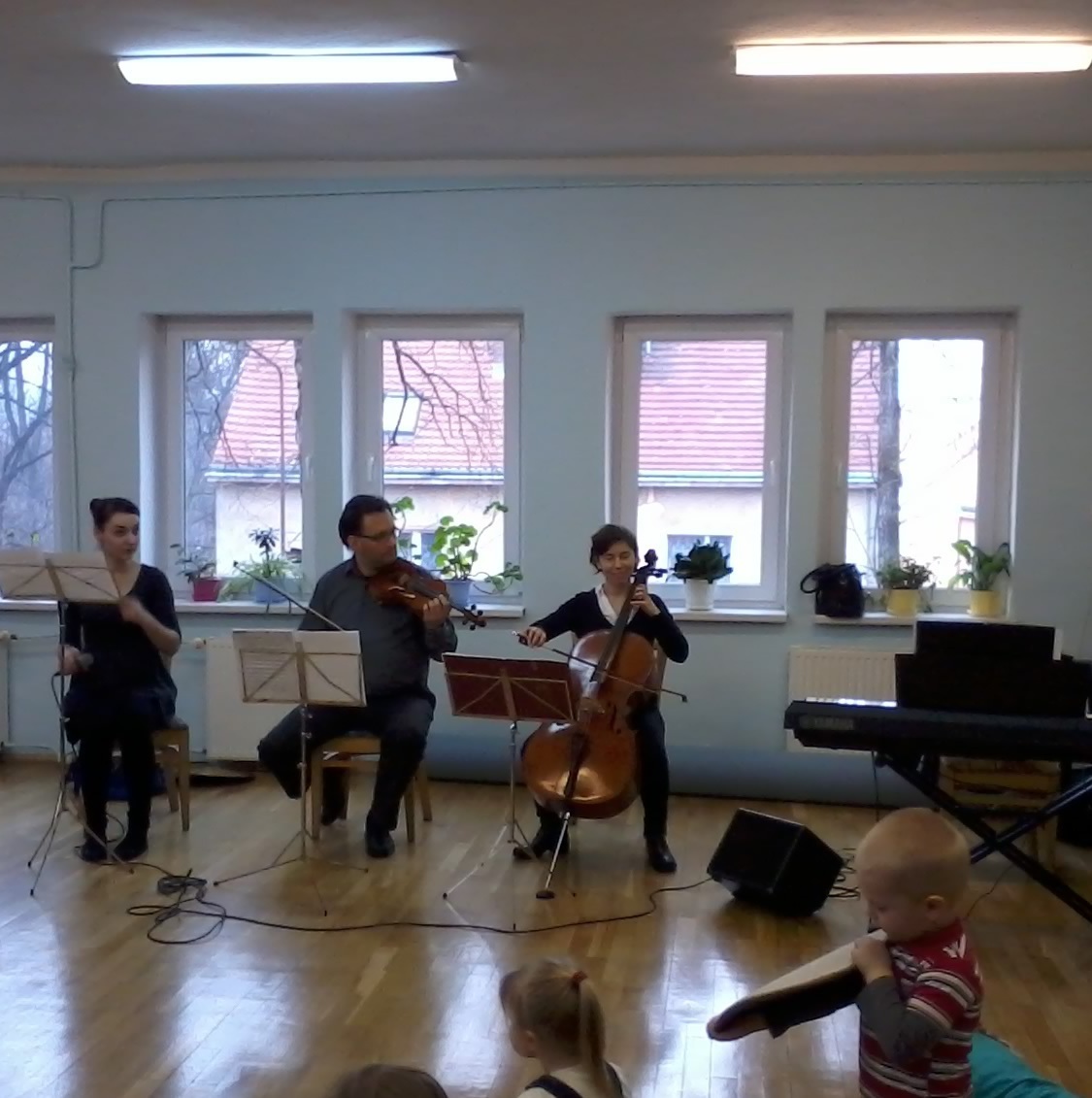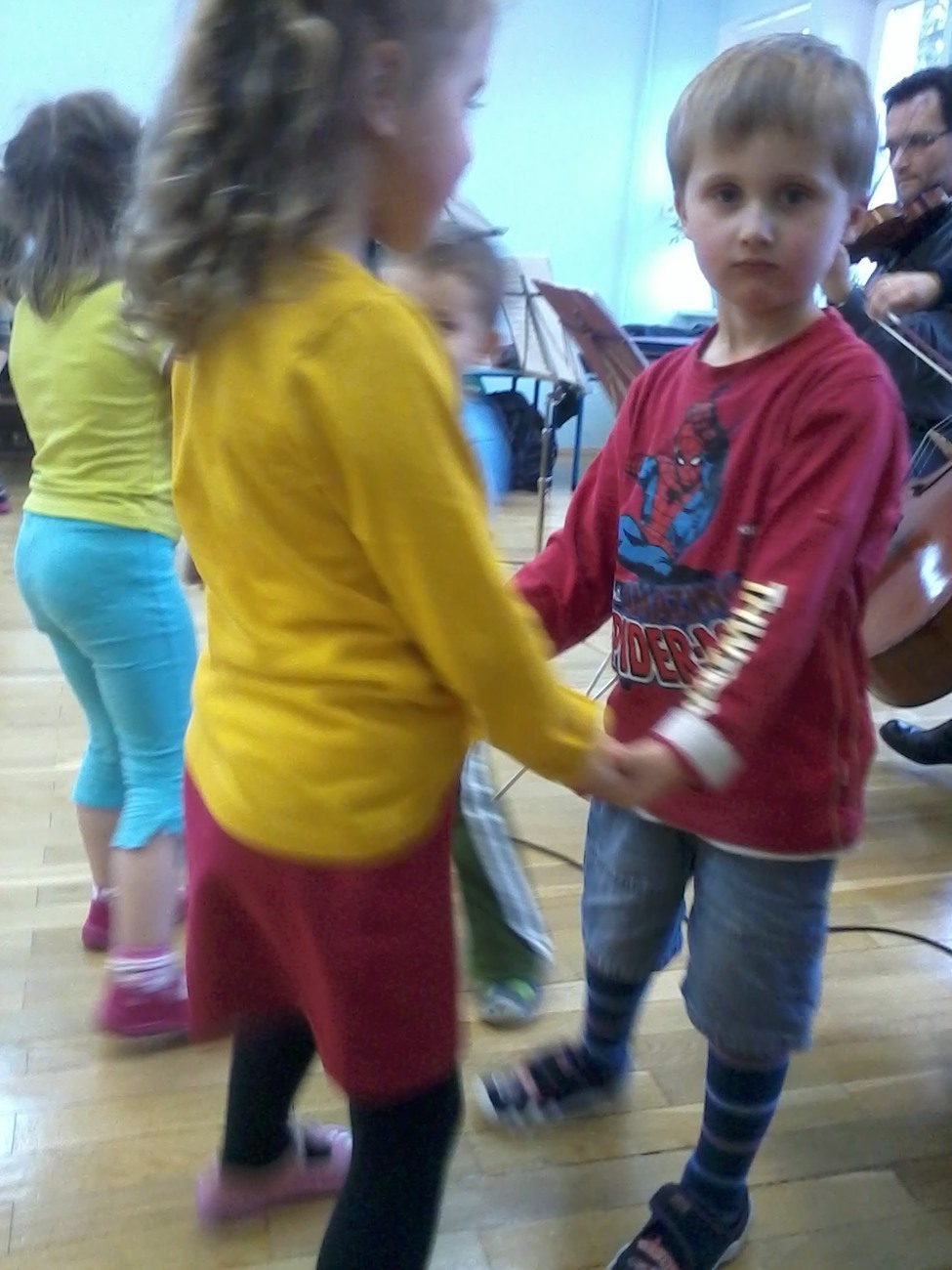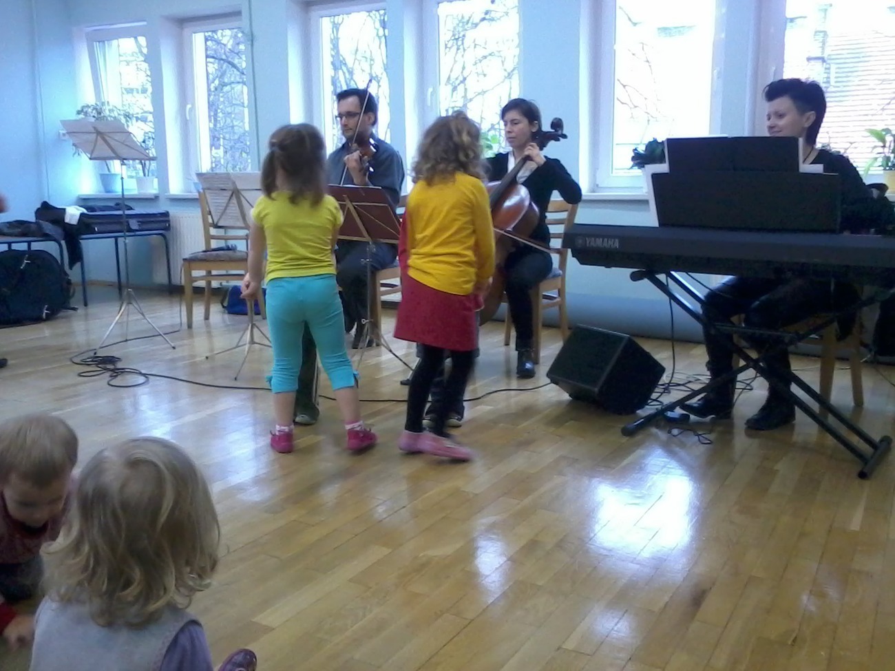 W naszej podróży przewinęły się utwory J. Straussa, W.A. Mozarta. W czasie koncertu jedno z dzieci miało możliwość akompaniowania uderzając wraz z prowadzącą w talerze. Trzy chętne i odważne pary mogły spróbować swoich sił w nauce walca przy dźwiękach „Nad pięknym, modrym Dunajem”, po to by na koniec koncertu klaskać w rytm „Marsza Radeckiego”.