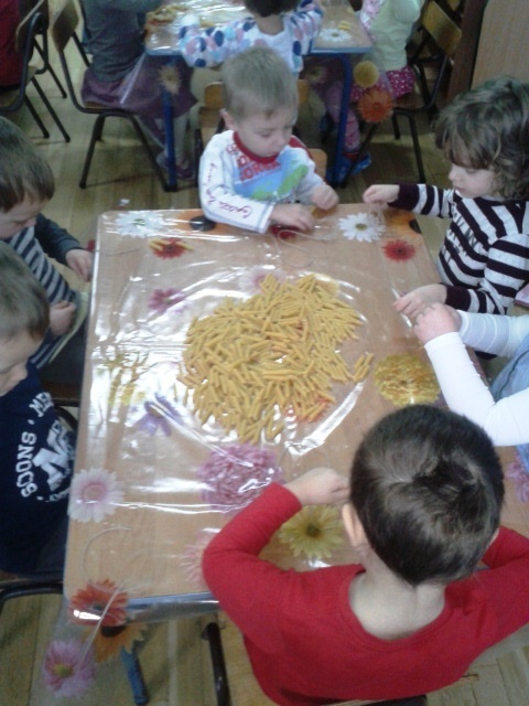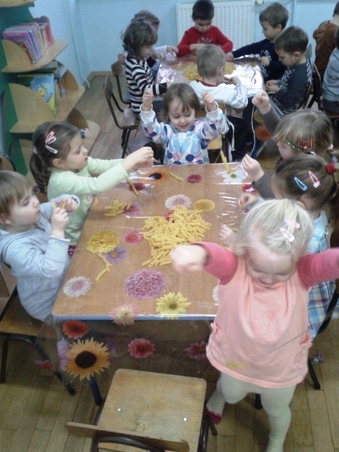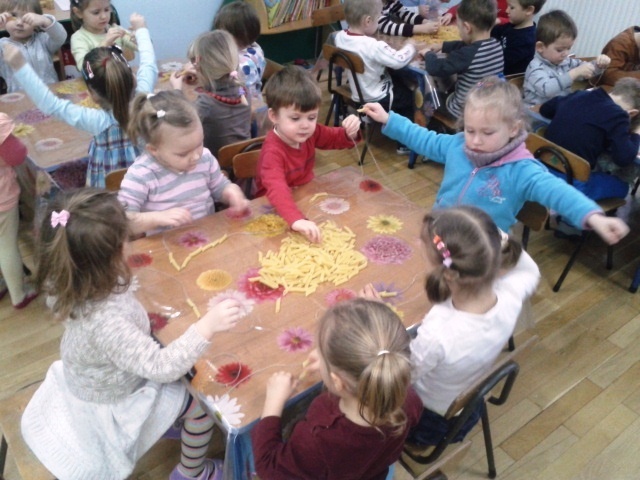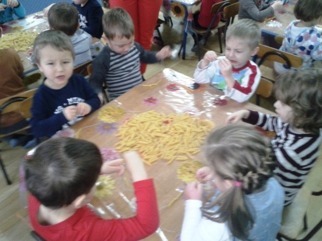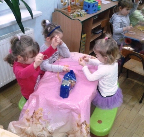 17.01.2014r. gr. II - Żabki zaczęła przygotowania do obchodów Dnia Babci i Dziadka. Nasze przedszkolaki miały niełatwe zadanie: z makaronu nawlekanego na sznurek tworzyli piękne korale dla Kochanych Babć. To zadanie wymagało do dzieci nie lada skupienia, precyzji oraz cierpliwości. Niektórzy wielokrotnie musieli zaczynać swoją pracę od nowa, ponieważ „niesforne” koraliki uciekały drugim końcem nitki. Na szczęście wszystkie prace zostały wykończone i czekają na wręczenie ich Babciom.