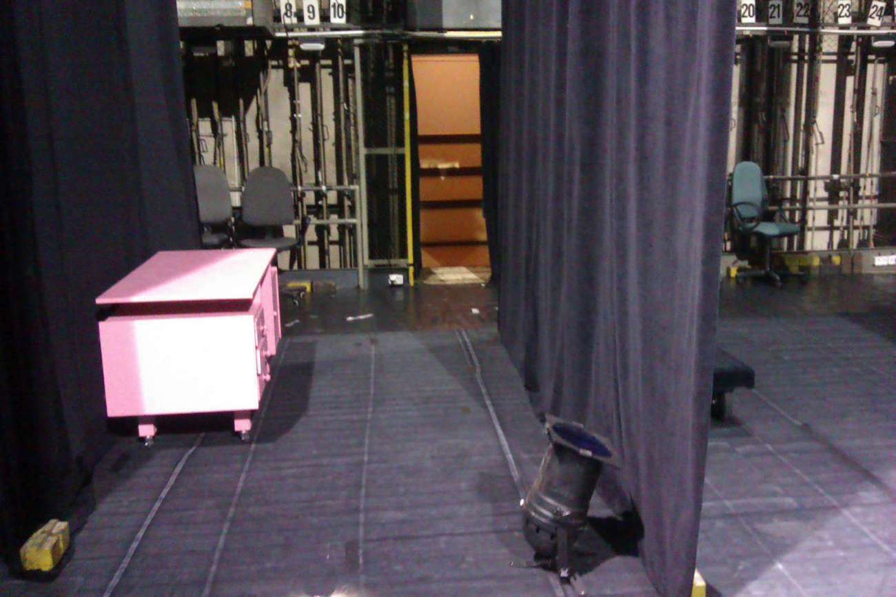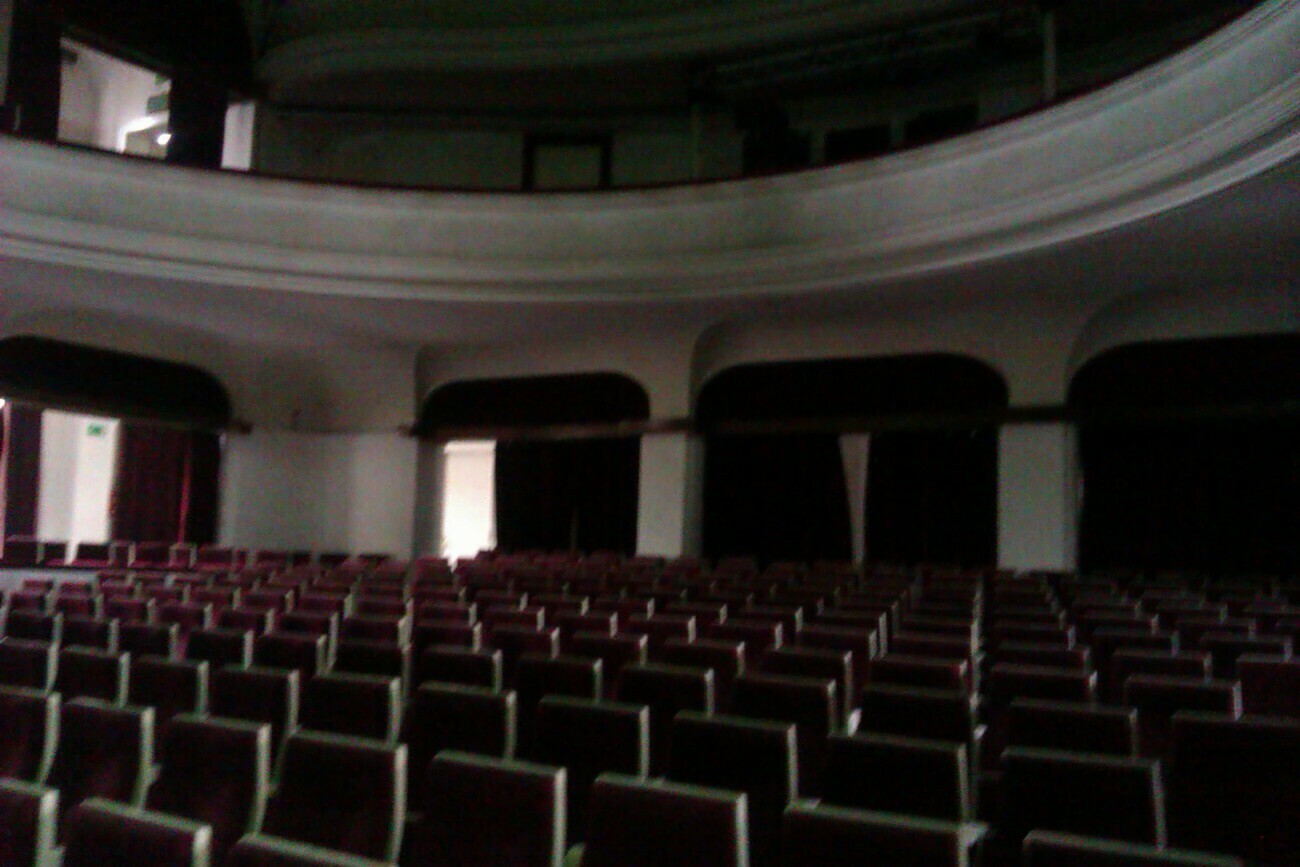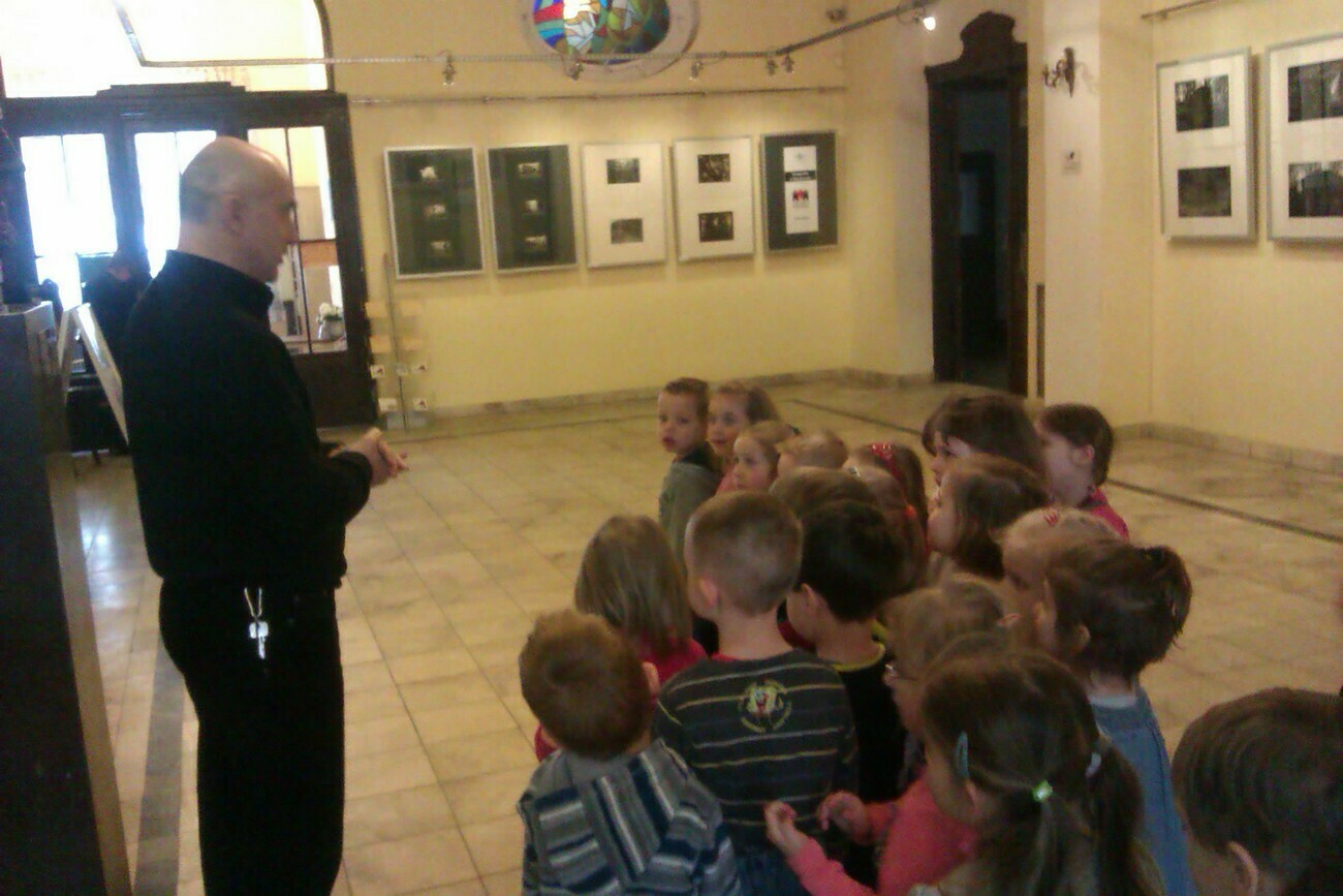 Wreszcie rozpoczęliśmy zwiedzanie. Pan Tadeusz zabrał nas do największej sali, w której odbywają się przedstawienia i tam właśnie nasze przedszkolaki miały swój pierwszy występ na wielkiej scenie.