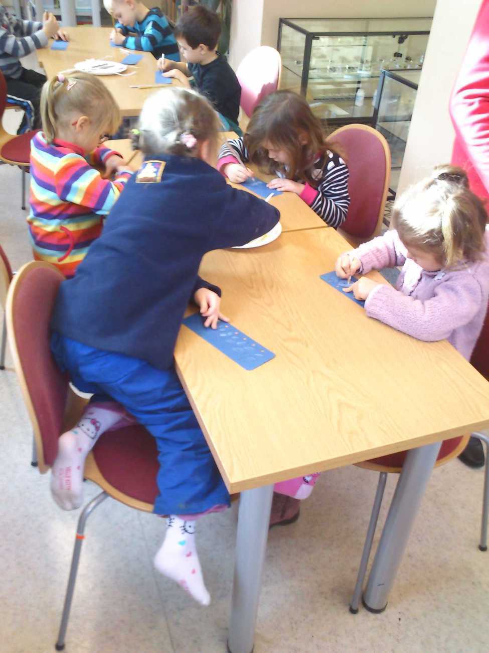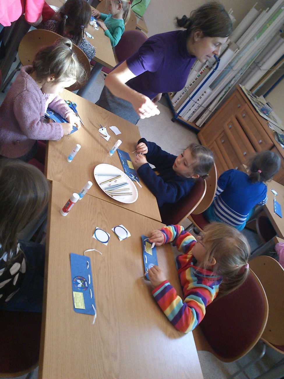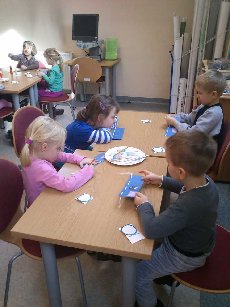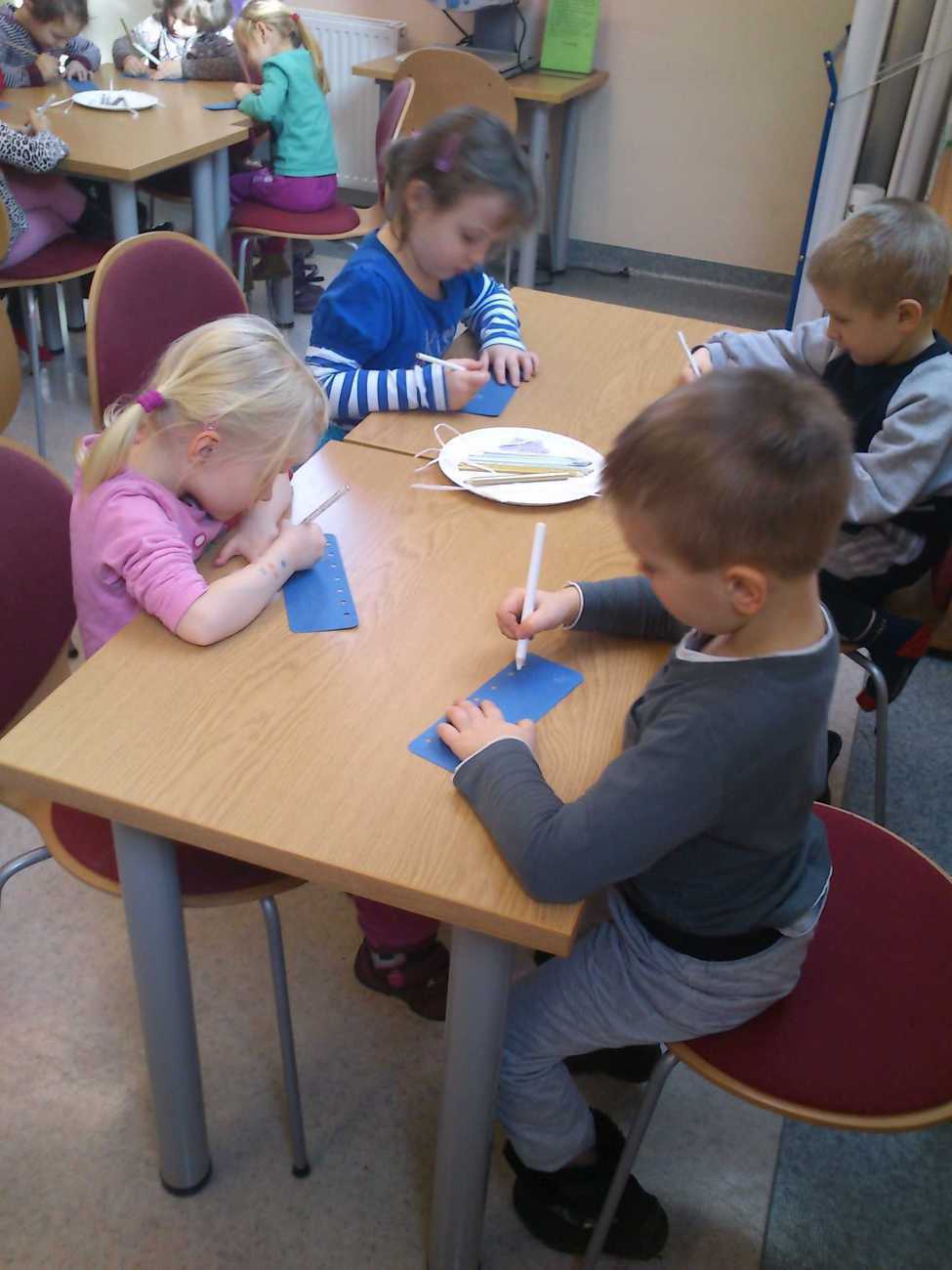 Usłyszały również wspaniałą bajkę „O zimie”. Następnie poznały do czego służy zakładka, jakie rodzaje zakładek można spotkać, z jakich materiałów można je wykonać. Miały również okazję do samodzielnego wykonania „Zimowej zakładki”. Zadanie nie sprawiło im żadnego kłopotu, zakładki były niesamowite.