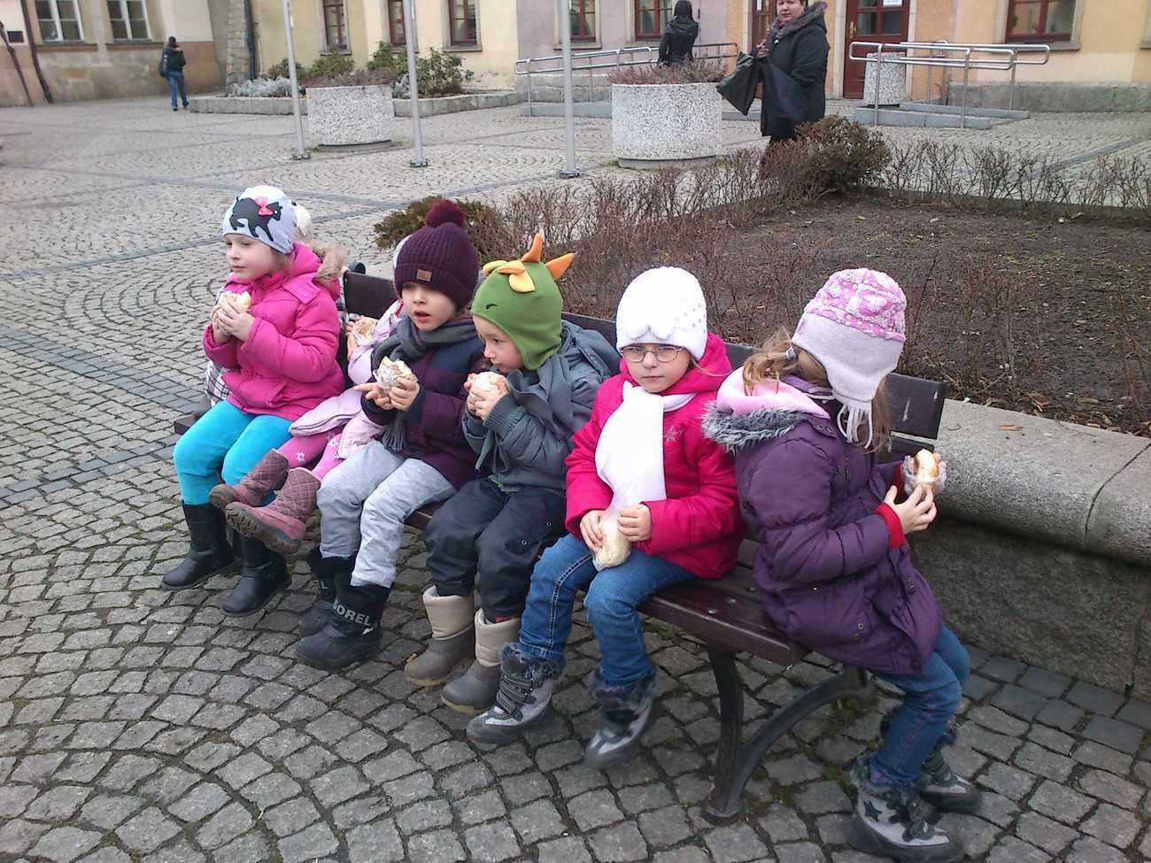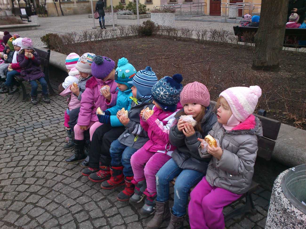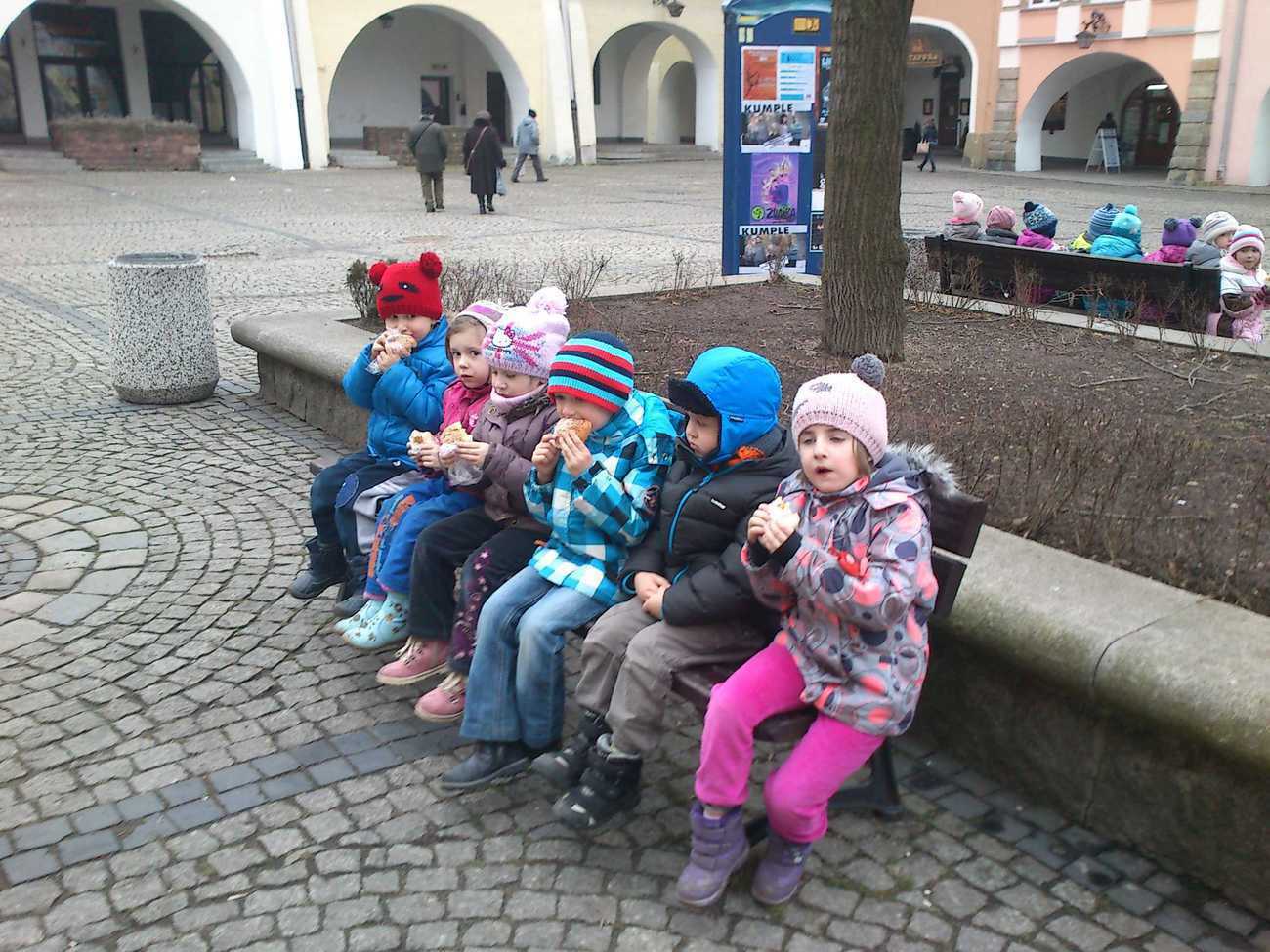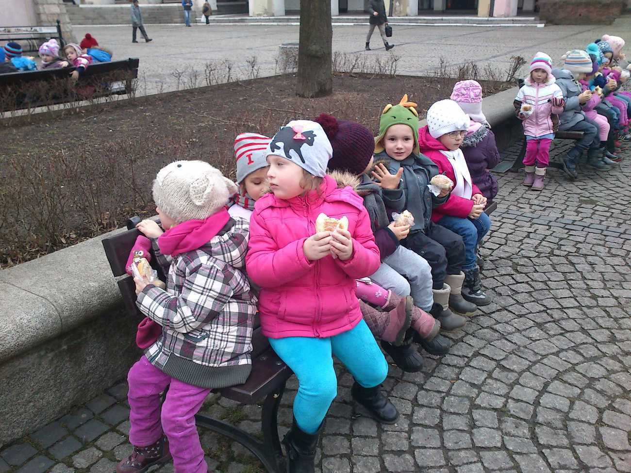 Po wspaniałej zabawie przyszedł czas na II śniadanie, które dzięki „zimowej” ciepłej aurze, mogły zjeść na Placu Ratuszowym. To był bardzo mile spędzony dzień.