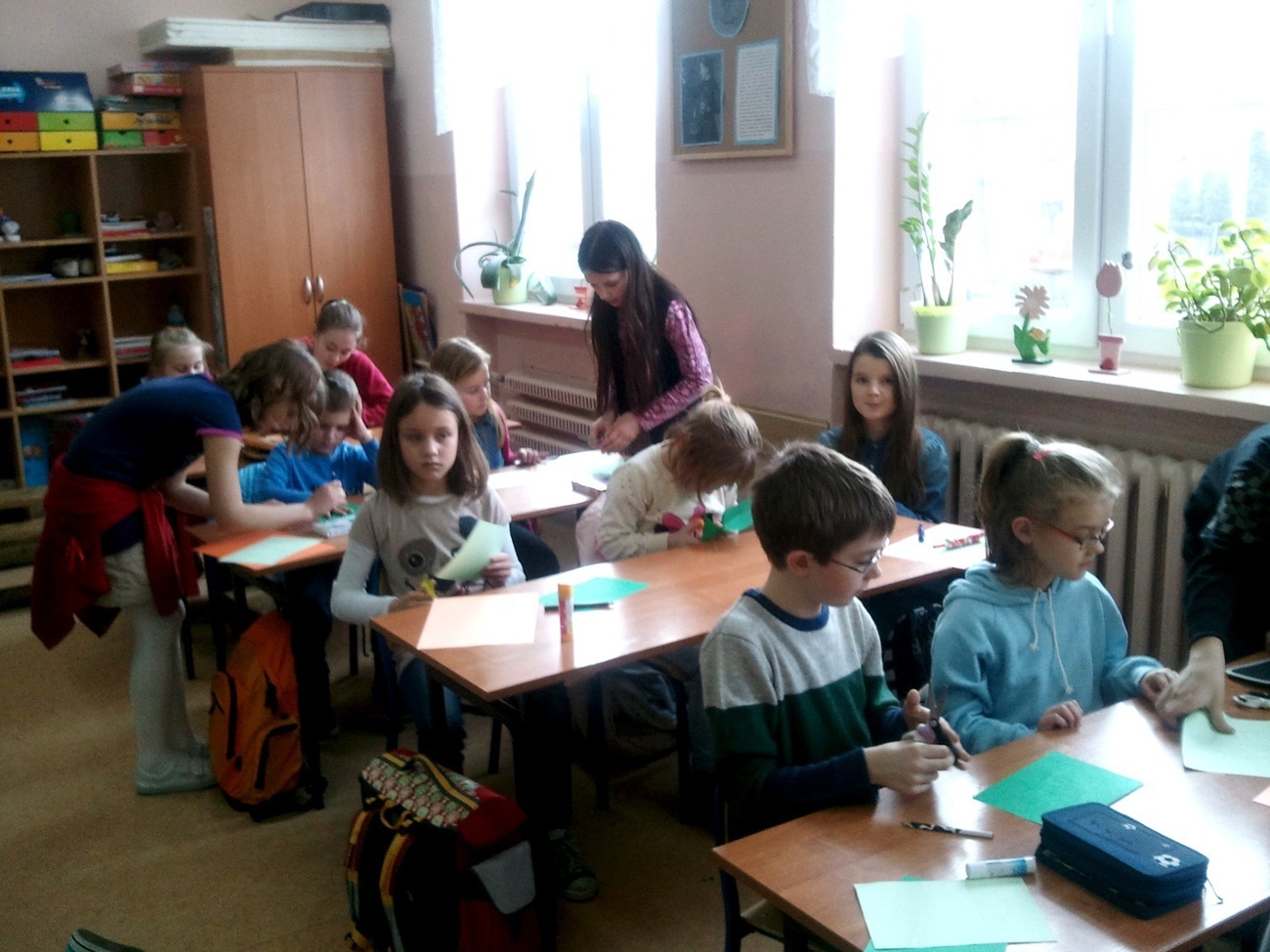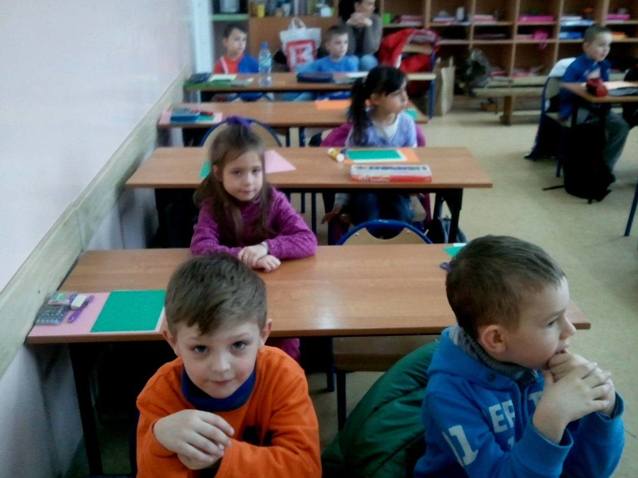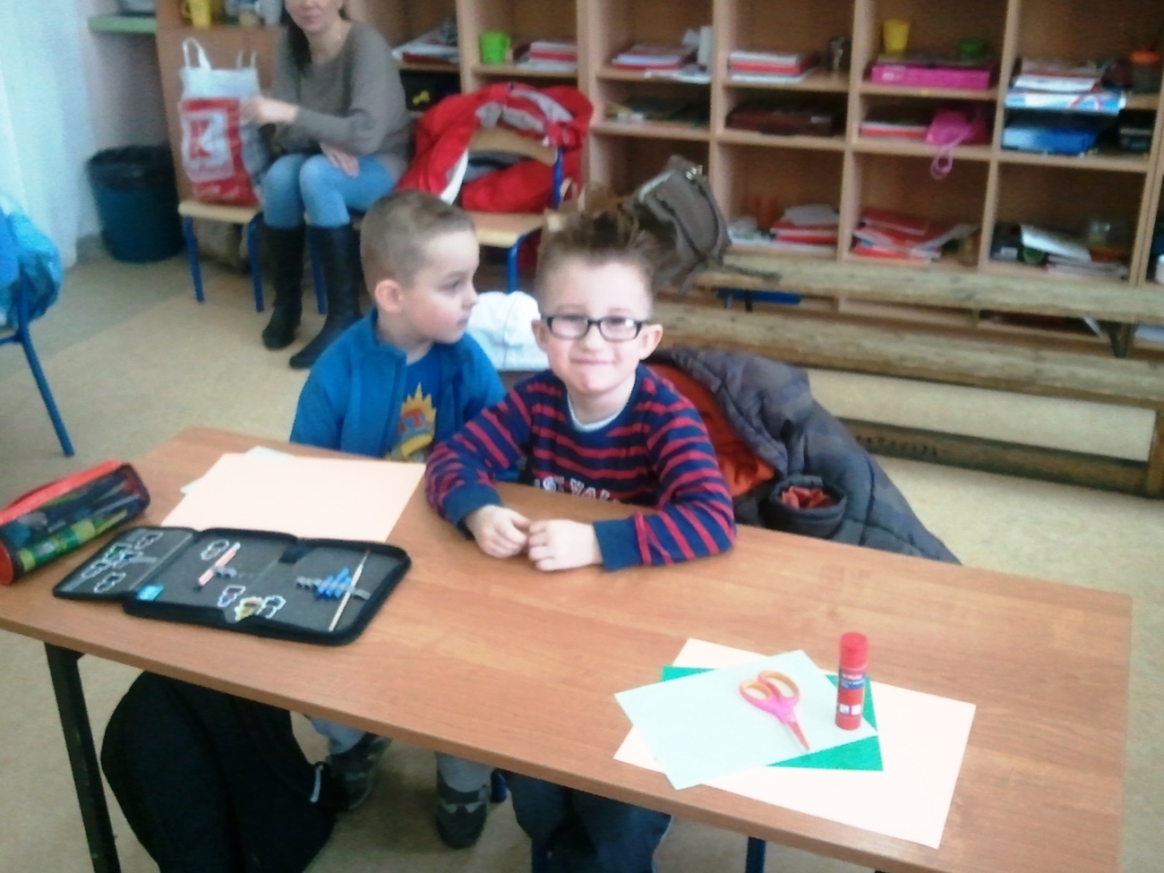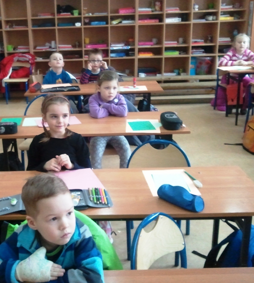 Większość starszaków z gr.V od września 2014 r rozpocznie naukę w szkole, w związku z tym całą grupą postanowiliśmy wybrać się do Szkoły Podstawowej nr 10. W odwiedziny do swojej klasy zaprosiła nas p. Ada i uczniowie z klasy III A. Spotkanie rozpoczęło się od bardzo ciepłego powitania i występu, który został dla nas przygotowany, następnie starszaki zajęły dowolnie wybrane miejsca w ławkach (jak przystało na uczniów) i rozpoczęły się zajęcia. W czasie lekcji wspólnie z uczniami wykonywaliśmy drzewka przyjaźni. Odrysowywaliśmy na papierze nasze dłonie, później przyklejaliśmy je na kolorowy papier formując z nich korony drzew a następnie dorysowywaliśmy pień. Tak zakończone prace były podpisywane i oddawane nauczycielce. Mieliśmy okazję uczestniczyć w długiej przerwie, podczas której wspólnie z uczniami zwiedzaliśmy szkołę, dowiedzieliśmy się jak wygląda taka przerwa w szkole i co oznacza dzwoniący dzwonek. Wizytę zakończyliśmy w sali komputerowej, w której to wspólnie z uczniami uczyliśmy się obsługi komputera i niektórych programów. Starszaki były pod wielkim wrażeniem zajęć i szkoły, dopytywały się kiedy znów będą mogły tu przyjść i spotkać się z nowo poznanymi kolegami i koleżankami.