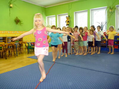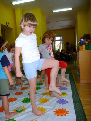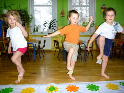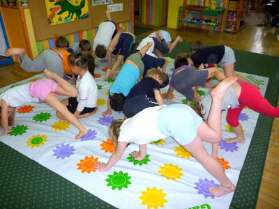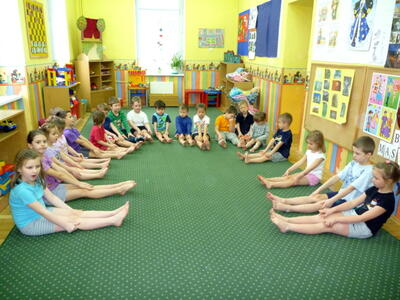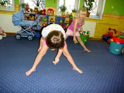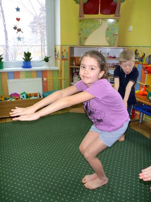 Ruch jest podstawowym bodźcem rozwojowym. Wpływa stymulująco na rozwój dziecka. Okres pobytu dziecka w przedszkolu jest szczególnie znaczący dla kształtowania jego motoryki. W tym okresie dziecko nabywa pewnych umiejętności, które w dalszych etapach życia jedynie doskonali. W naszym przedszkolu na zajęciach z „Gimnastyki ogólnorozwojowej” dziecko uczy się nowych ruchów, ćwiczeń, zabaw. Proponowane ćwiczenia są dostosowane do aktualnych możliwości i umiejętności dzieci z danej grupy wiekowej. Podczas ćwiczeń dominują zabawy oparte na podstawowych ruchach takich jak: bieg, rzut, skok, czworakowanie. Dzieci szczególnie upodobały sobie formę opowieści ruchowej, która polega na tym, że prowadząca opowiada historię, którą dzieci ilustrują ruchem np. idziemy drogą, nagle zerwał się wiatr, szukamy schronienia, na szczęście znowu zaczyna świecić słońce, a my wskakujemy do jeziora i pływamy na plecach, wychodzimy na brzeg i wygrzewamy się na ciepłym piasku.